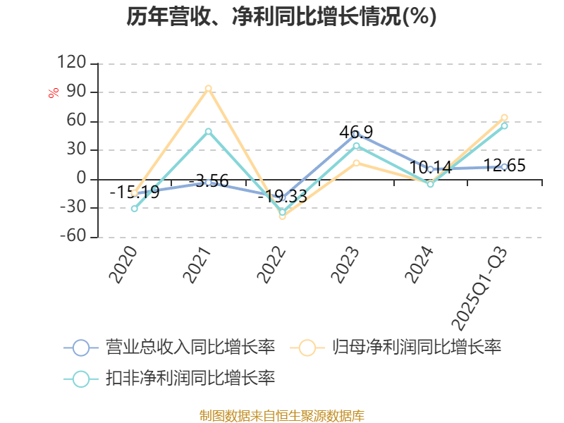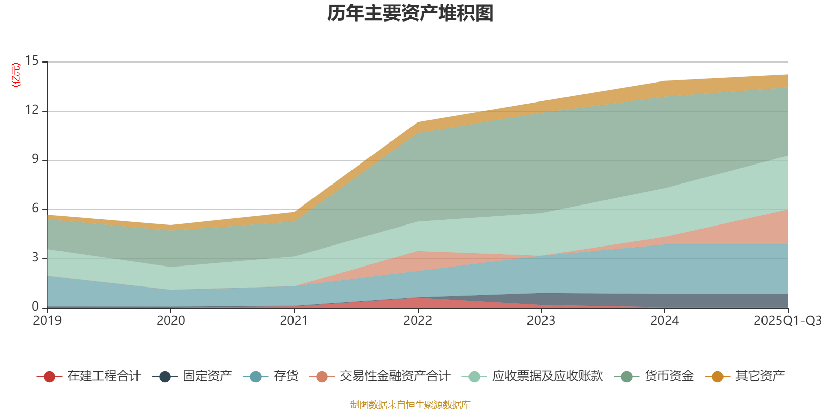 资产重大变化方面,截至2025年三季度末,公司交易性金融资产合计较上年末增加358.75%,占公司总资产比重上升11.64个百分点;货币资金较上年末减少25.12%,占公司总资产比重下降10.95个百分点;应收票据及应收账款较上年末增加10.46%,占公司总资产比重上升1.61个百分点;无形资产较上年末减少32.53%,占公司总资产比重下降0.87个百分点。