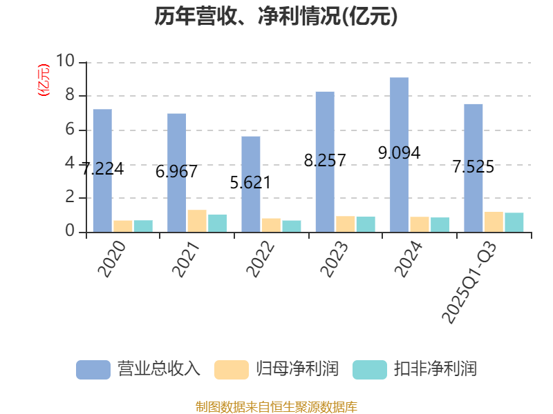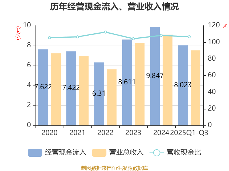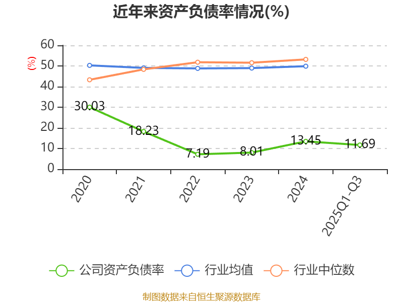 2025年前三季度,公司流动比率为7.94,速动比率为6.06。