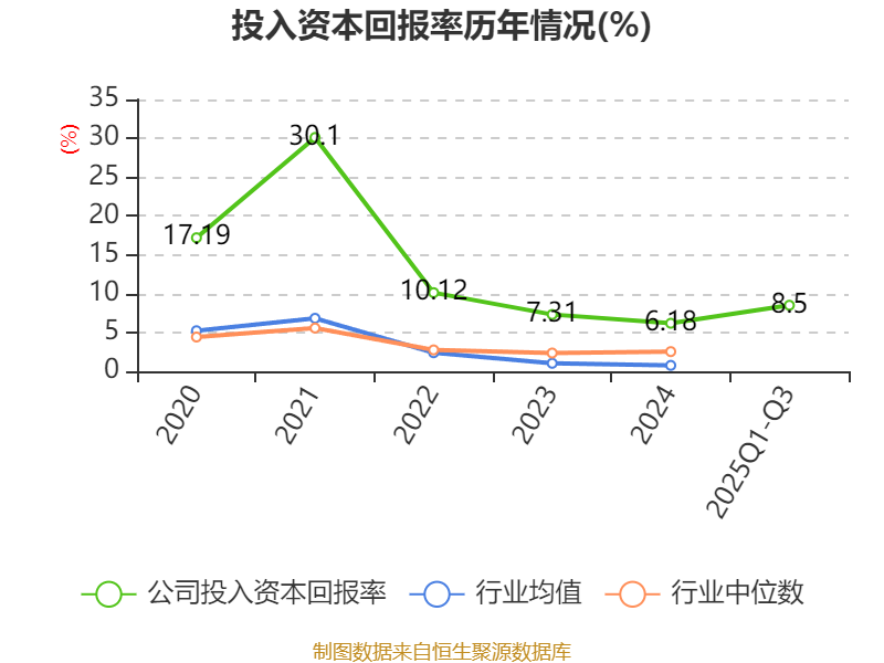 盈利能力方面, 2025年前三季度公司加权平均净资产收益率为9.57%,同比上升3.44个百分点。公司2025年前三季度投入资本回报率为8.5%,较上年同期上升3.24个百分点。
