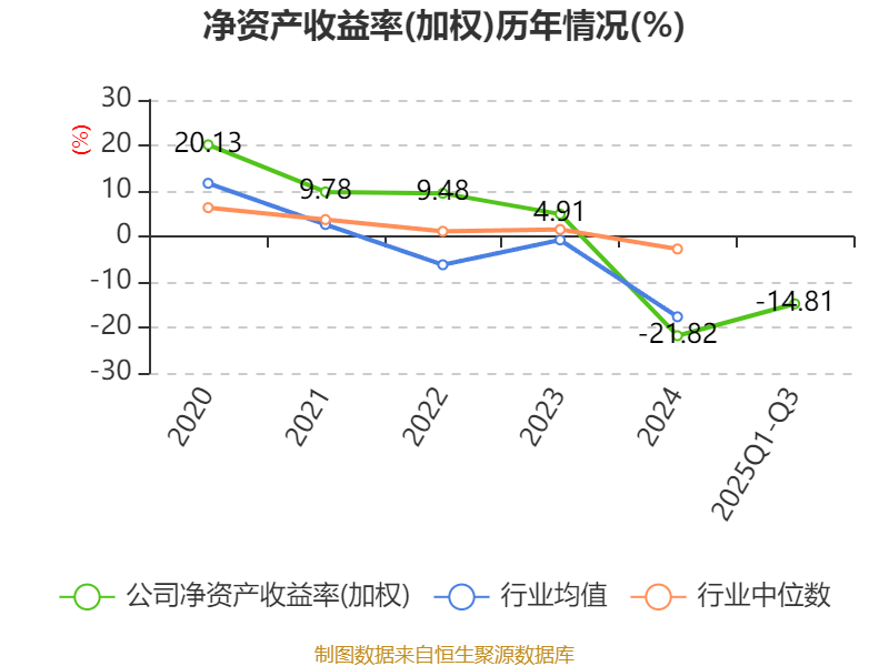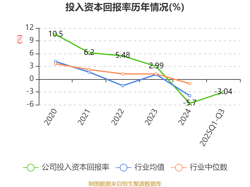 盈利能力方面, 2025年前三季度公司加权平均净资产收益率为-14.81%,同比下降7.41个百分点。公司2025年前三季度投入资本回报率为-3.04%,较上年同期下降1.42个百分点。