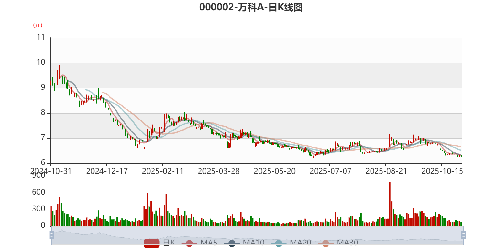 以10月30日收盘价计算,万科A目前市盈率(TTM)约为-1.26倍,市净率(LF)约0.43倍,市销率(TTM)约0.26倍。