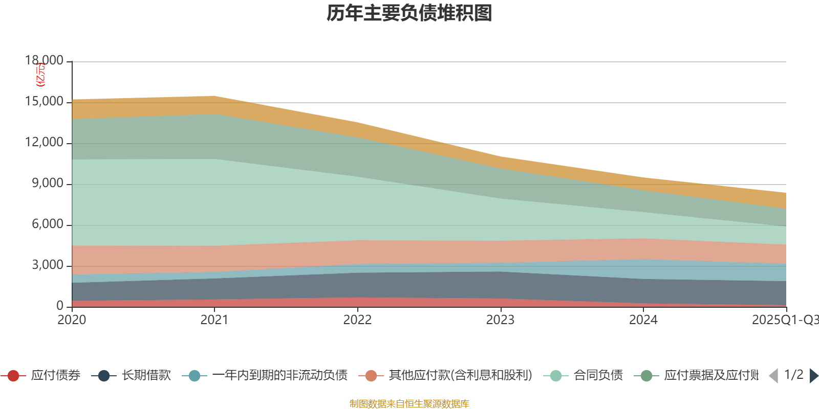 负债重大变化方面,截至2025年三季度末,公司合同负债较上年末减少31.43%,占公司总资产比重下降3.35个百分点;其他非流动负债较上年末增加1447.59%,占公司总资产比重上升2.28个百分点;长期借款较上年末减少1.45%,占公司总资产比重上升1.6个百分点;应付票据及应付账款较上年末减少18.06%,占公司总资产比重下降0.9个百分点。
