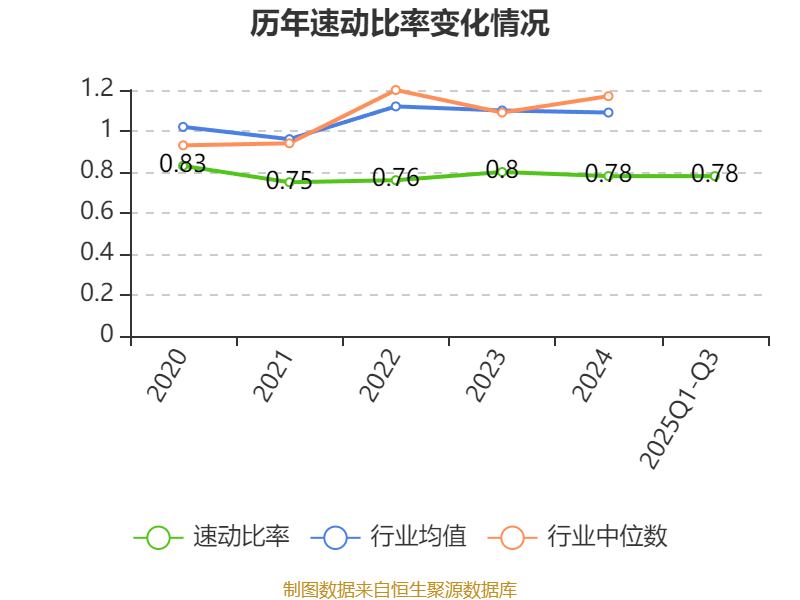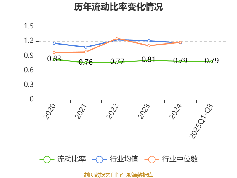 2025年前三季度,公司流动比率为0.79,速动比率为0.78。