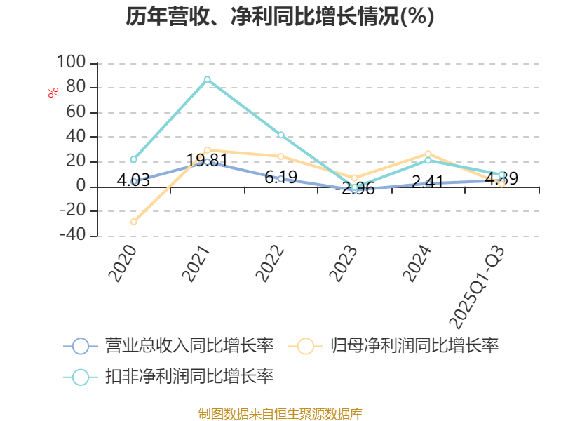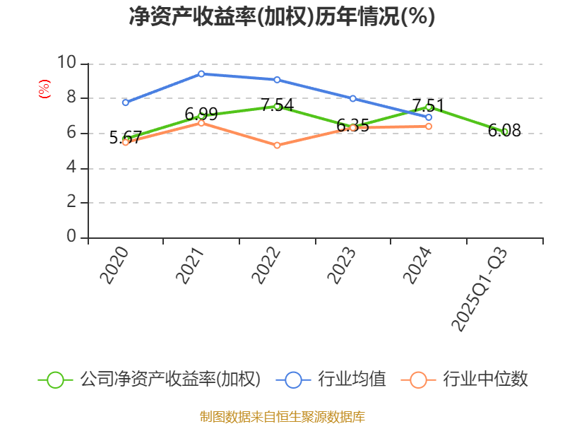 盈利能力方面, 2025年前三季度公司加权平均净资产收益率为6.08%,同比下降0.14个百分点。公司2025年前三季度投入资本回报率为4.61%,较上年同期下降0.03个百分点。