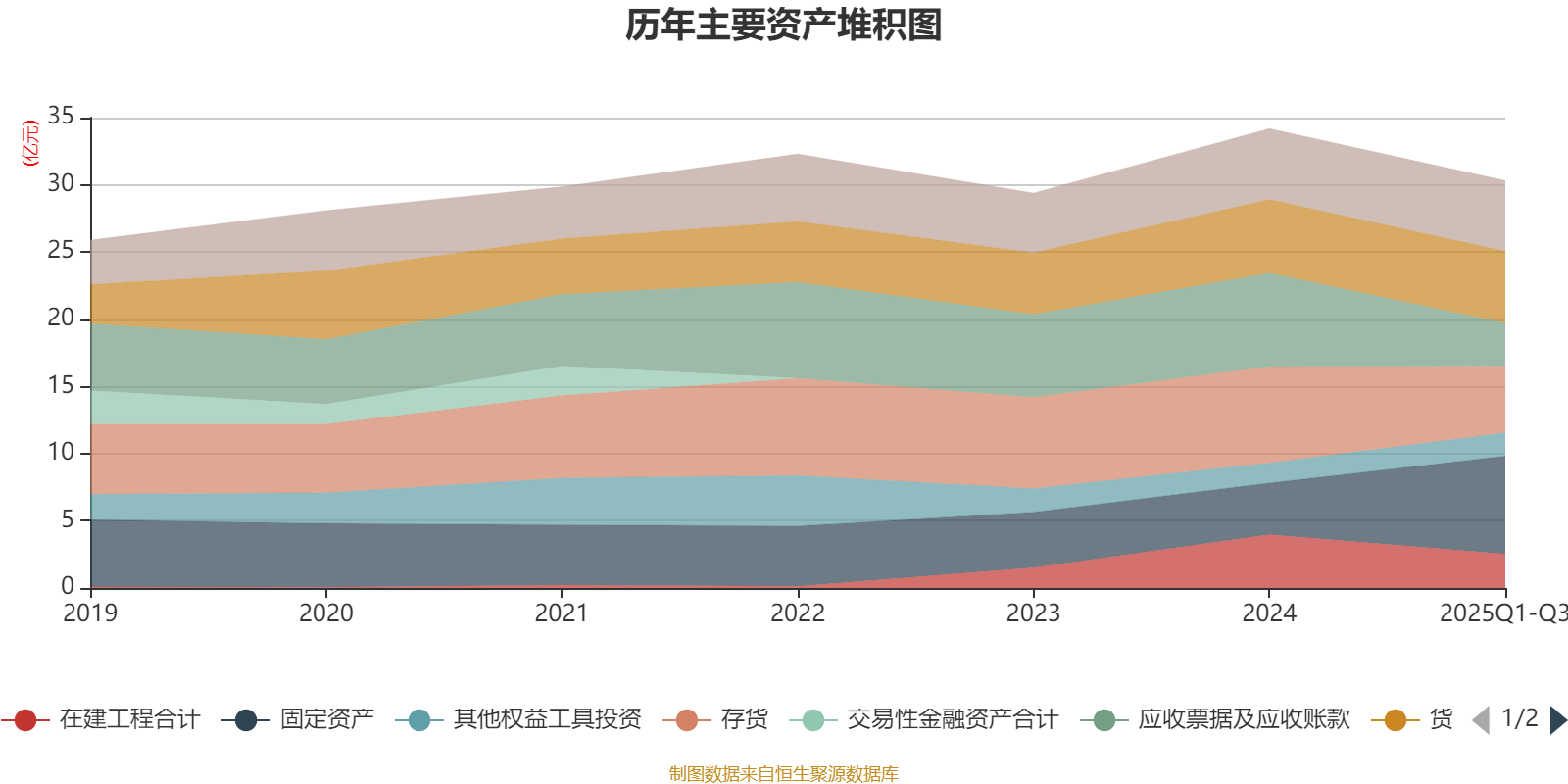 资产重大变化方面,截至2025年三季度末,公司固定资产较上年末增加89.34%,占公司总资产比重上升12.77个百分点;应收票据及应收账款较上年末减少54.03%,占公司总资产比重下降9.77个百分点;存货较上年末减少30.44%,占公司总资产比重下降4.52个百分点;在建工程合计较上年末减少36.16%,占公司总资产比重下降3.25个百分点。