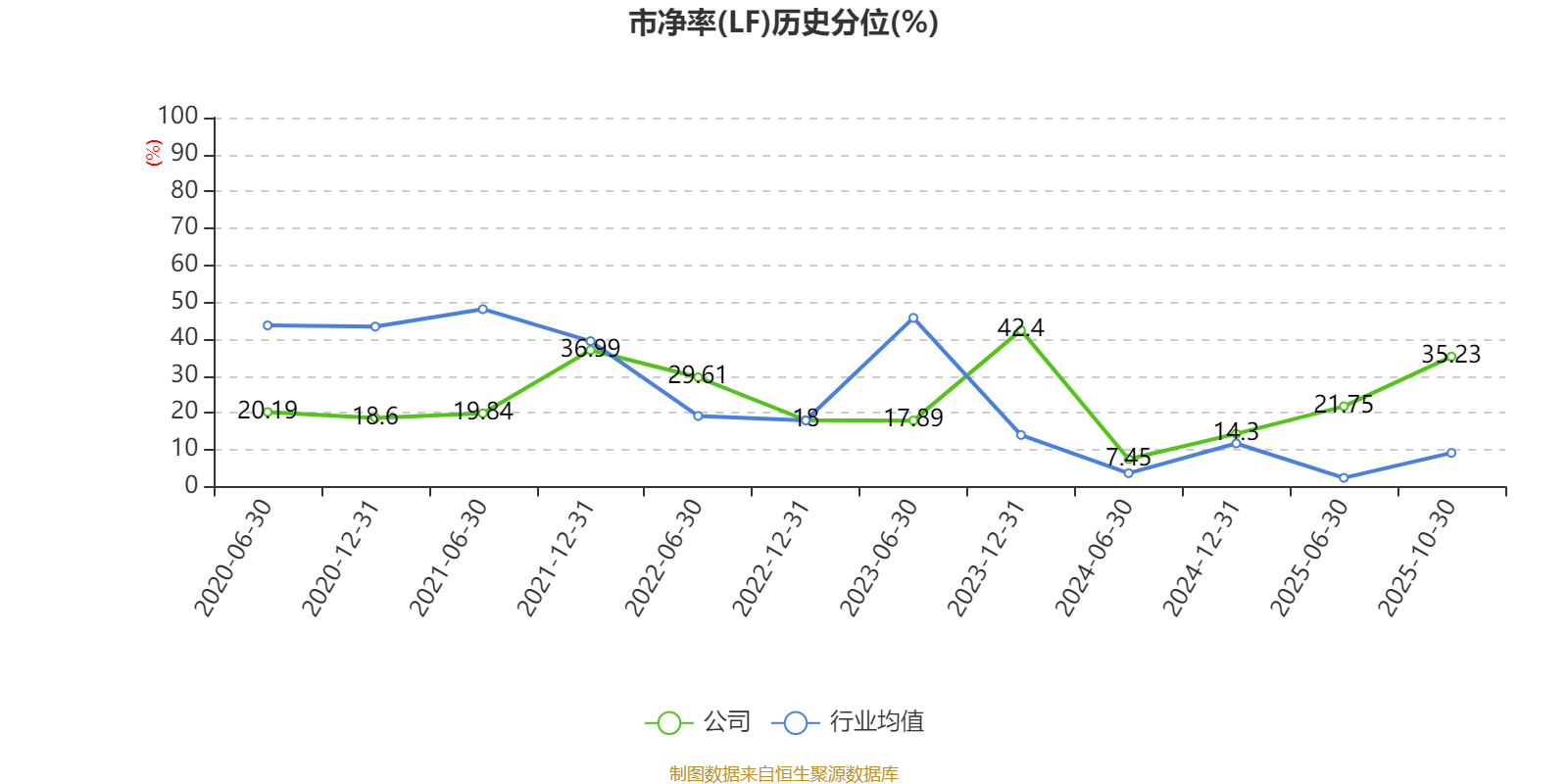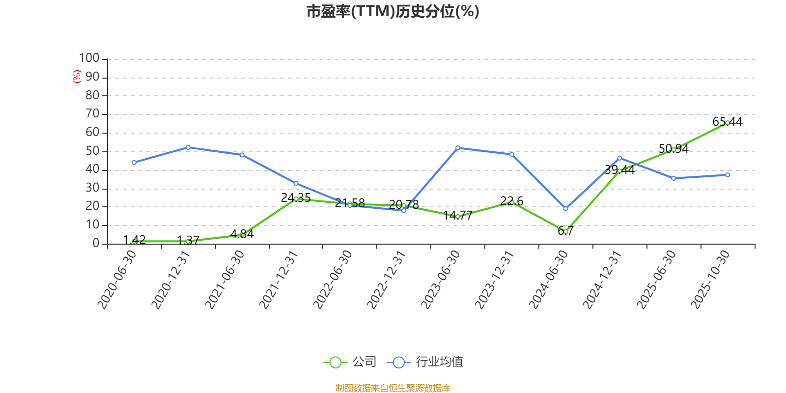 市盈率、市净率为负时,不显示当期分位数,会导致折线图中断。