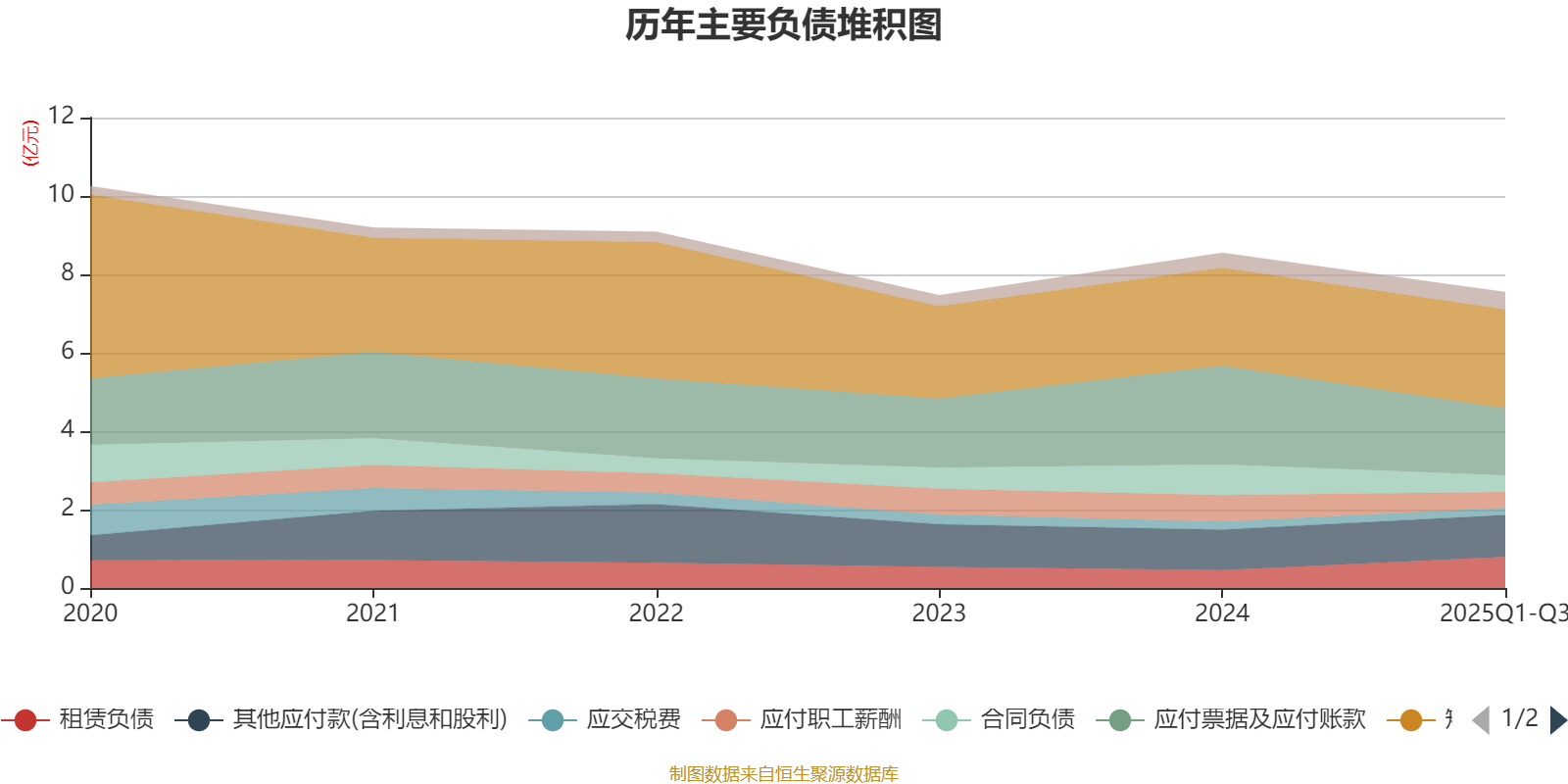 负债重大变化方面,截至2025年三季度末,公司应付票据及应付账款较上年末减少32.34%,占公司总资产比重下降1.76个百分点;租赁负债较上年末增加73.38%,占公司总资产比重上升0.84个百分点;合同负债较上年末减少46.29%,占公司总资产比重下降0.81个百分点;应付职工薪酬较上年末减少39.11%,占公司总资产比重下降0.58个百分点。