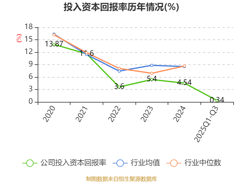 盈利能力方面, 2025年前三季度公司加权平均净资产收益率为0.84%,同比下降3.6个百分点。公司2025年前三季度投入资本回报率为0.34%,较上年同期下降3.06个百分点。