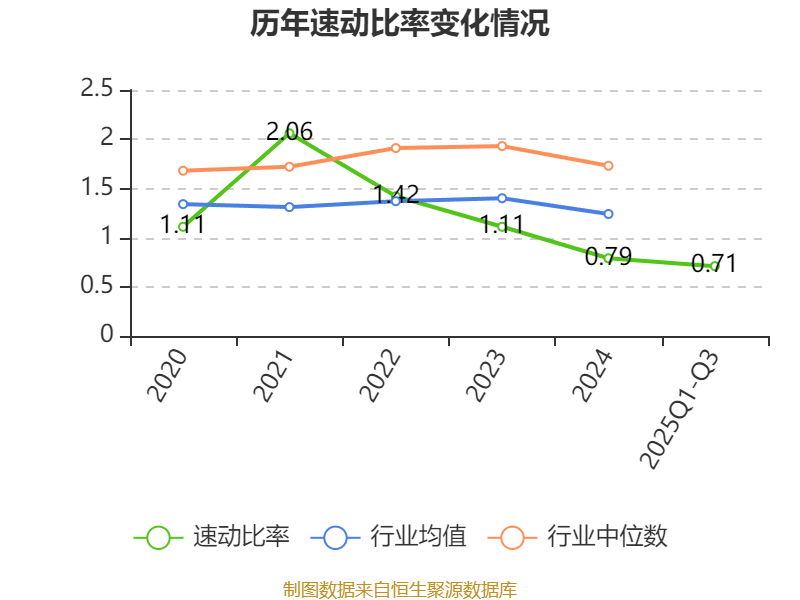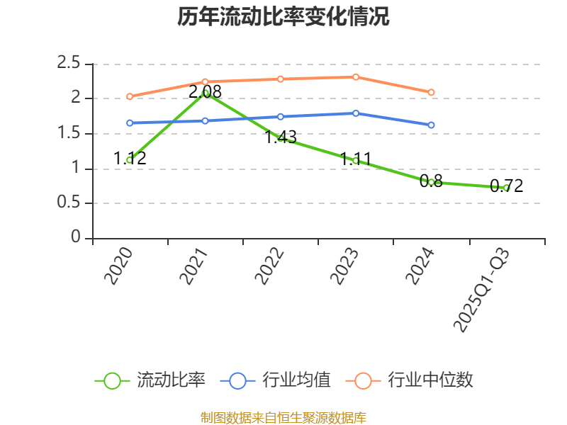 2025年前三季度,公司流动比率为0.72,速动比率为0.71。