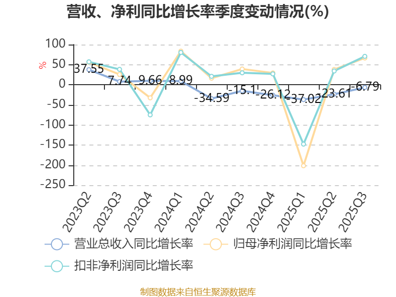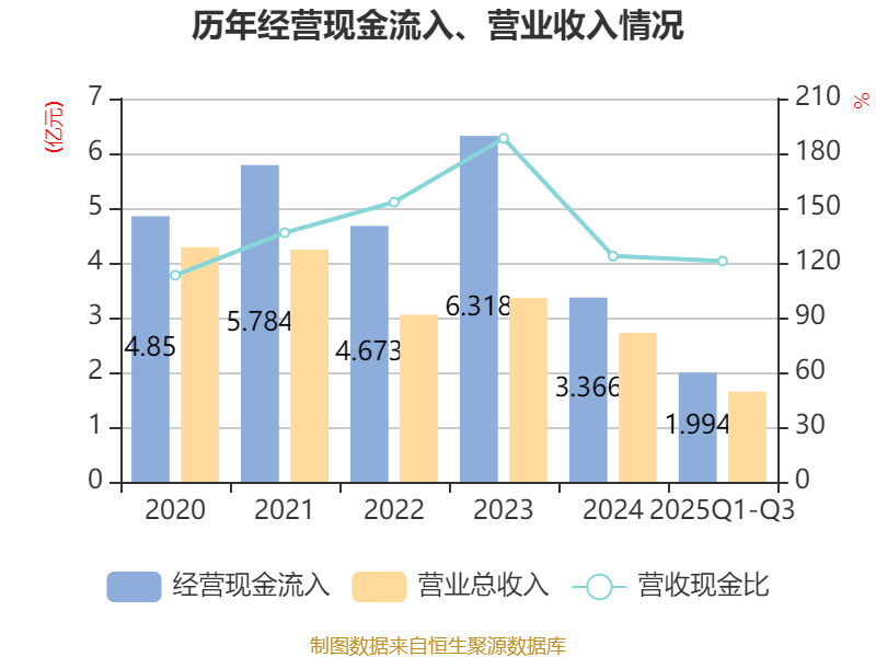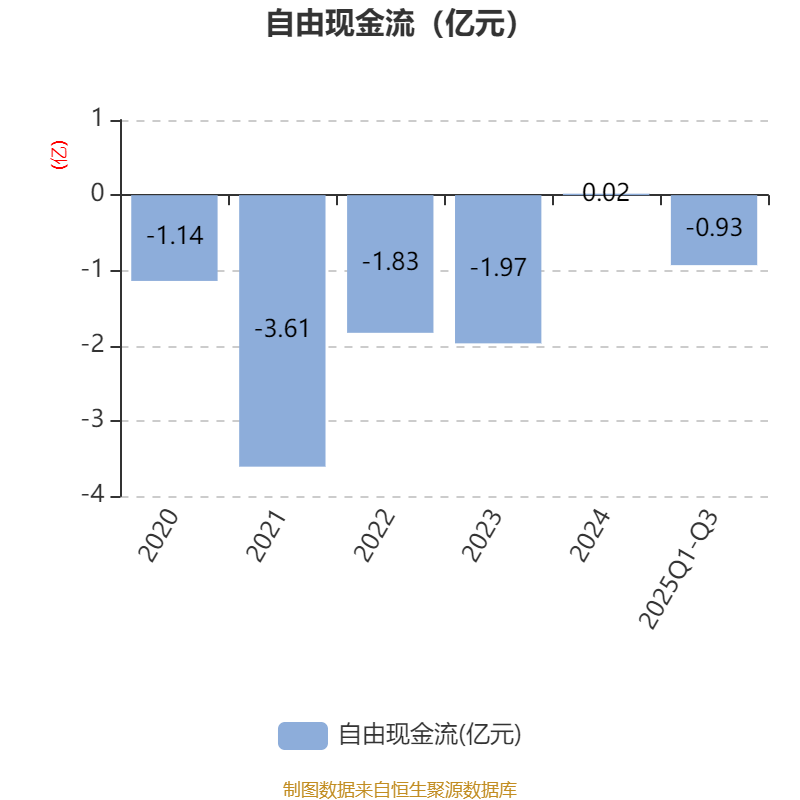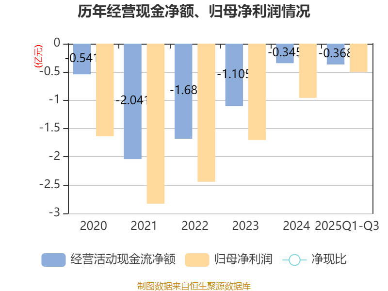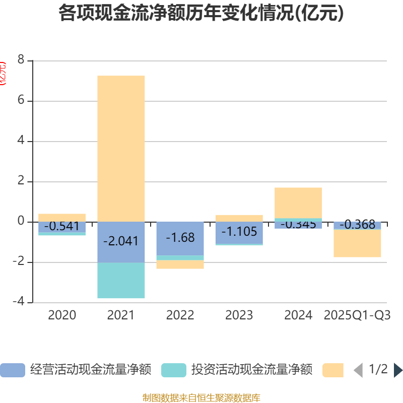 2025年前三季度,公司经营活动现金流净额为-3679.23万元,同比减少1652.31万元;筹资活动现金流净额-1.36亿元,同比减少2.37亿元;投资活动现金流净额-303.51万元,上年同期为-7297.51万元。