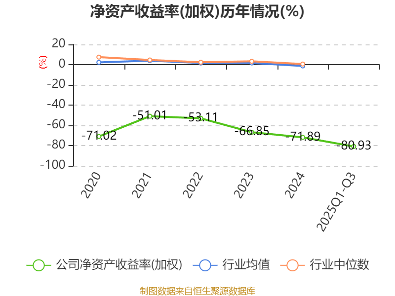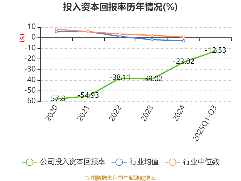 盈利能力方面, 2025年前三季度公司加权平均净资产收益率为-80.93%,同比下降38.9个百分点。公司2025年前三季度投入资本回报率为-12.53%,较上年同期上升2.11个百分点。