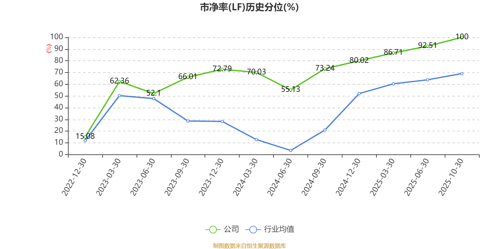 市盈率、市净率为负时,不显示当期分位数,会导致折线图中断。