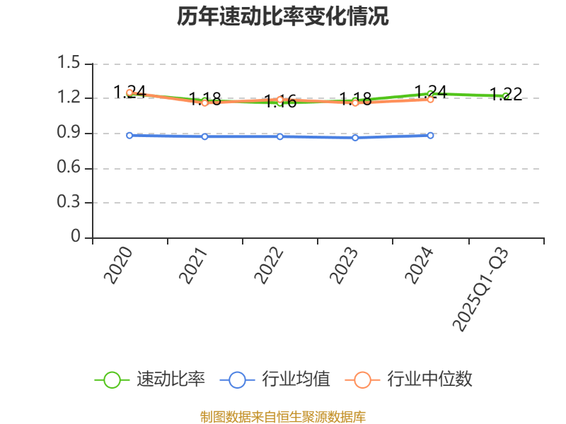 2025年前三季度,公司流动比率为1.23,速动比率为1.22。