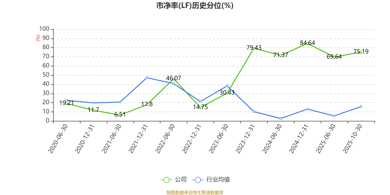 市盈率、市净率为负时,不显示当期分位数,会导致折线图中断。