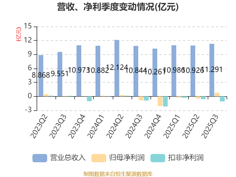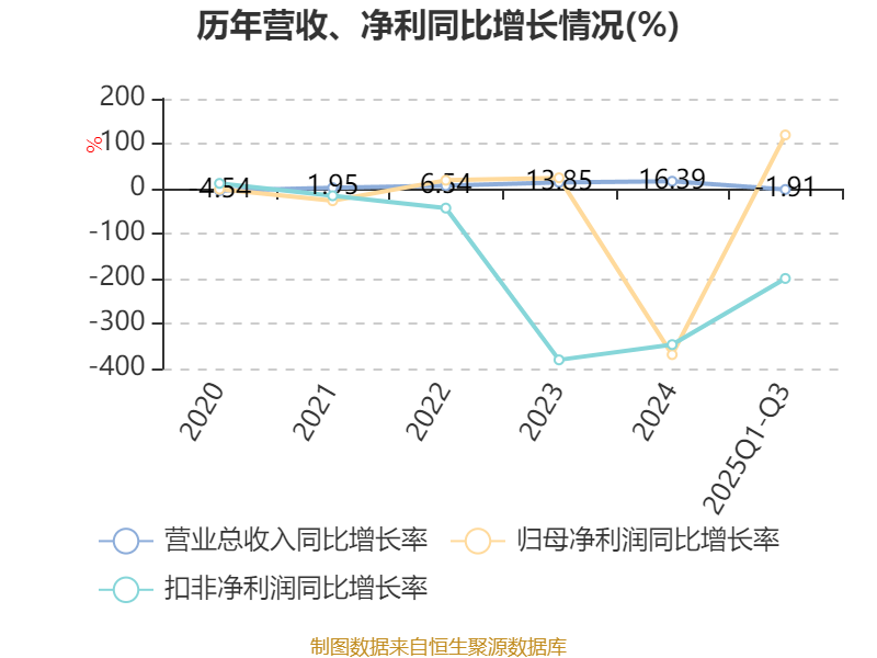 2025年前三季度,公司经营活动现金流净额为-3.54亿元,同比减少3.04亿元;筹资活动现金流净额4.16亿元,同比增加3.36亿元;投资活动现金流净额4.97亿元,上年同期为-327.73万元。