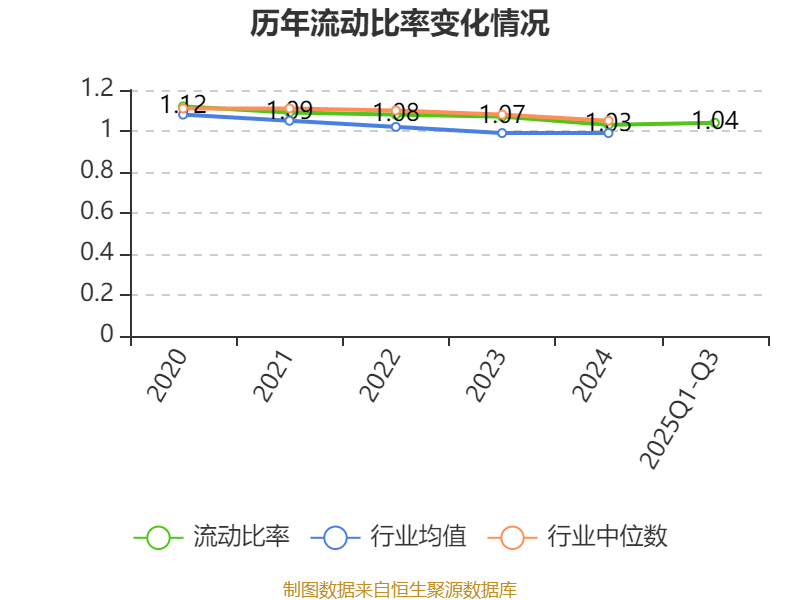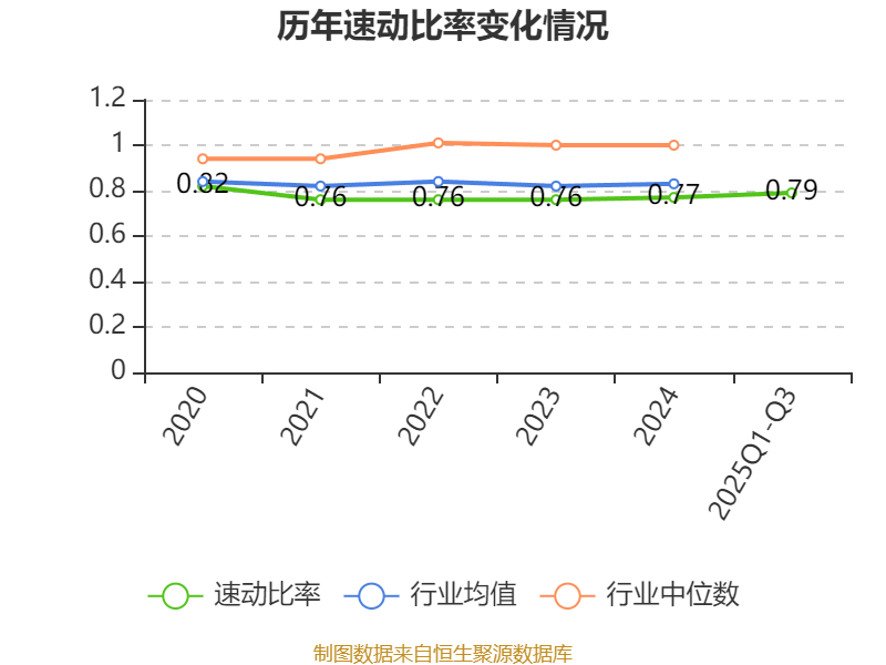 2025年前三季度,公司流动比率为1.04,速动比率为0.79。