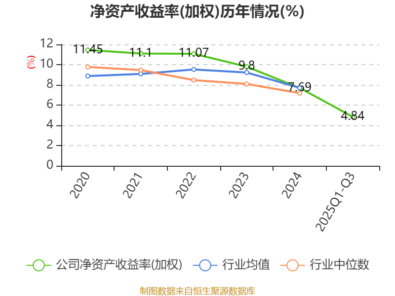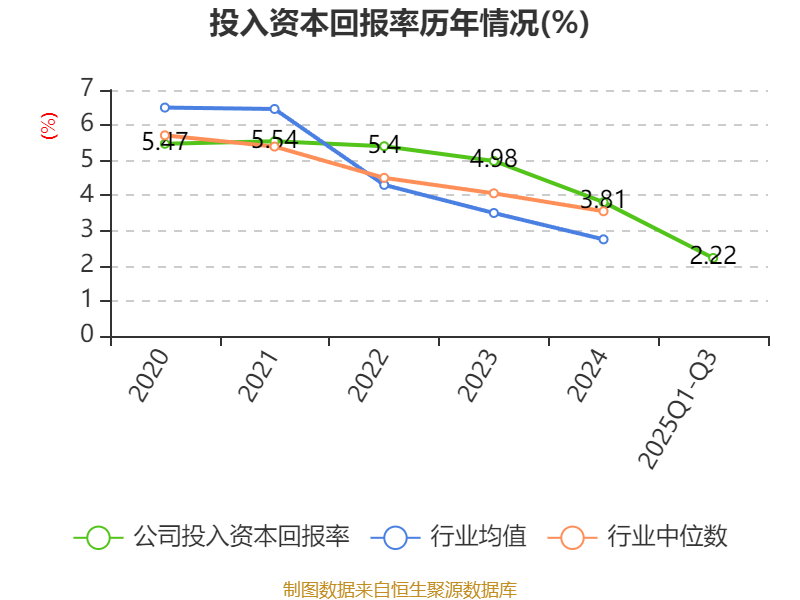 盈利能力方面, 2025年前三季度公司加权平均净资产收益率为4.84%,同比下降0.72个百分点。公司2025年前三季度投入资本回报率为2.22%,较上年同期下降0.6个百分点。