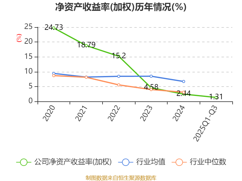 盈利能力方面, 2025年前三季度公司加权平均净资产收益率为1.31%,同比上升0.14个百分点。公司2025年前三季度投入资本回报率为0.42%,较上年同期上升0.02个百分点。