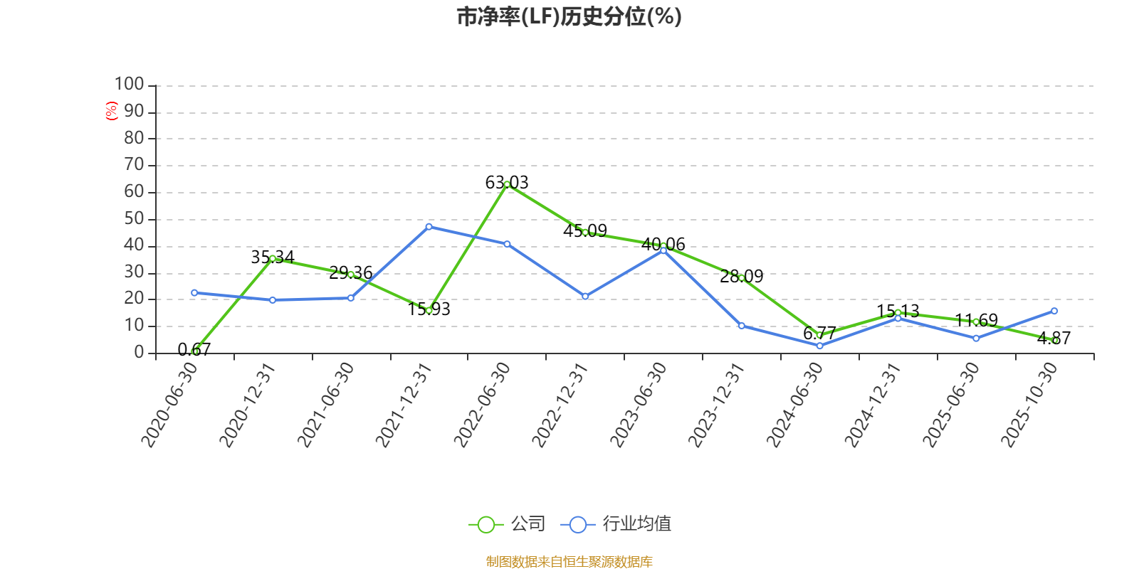 市盈率、市净率为负时,不显示当期分位数,会导致折线图中断。