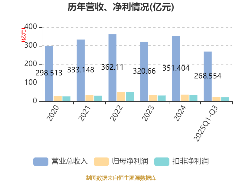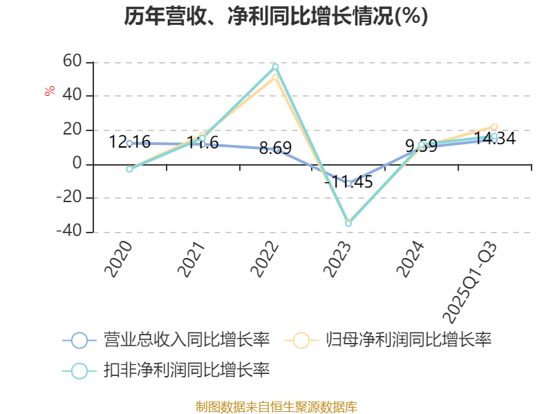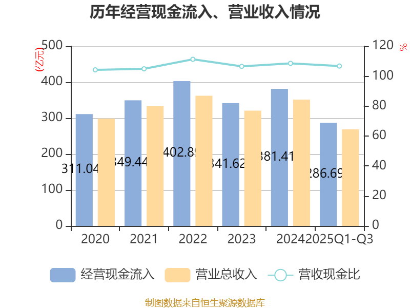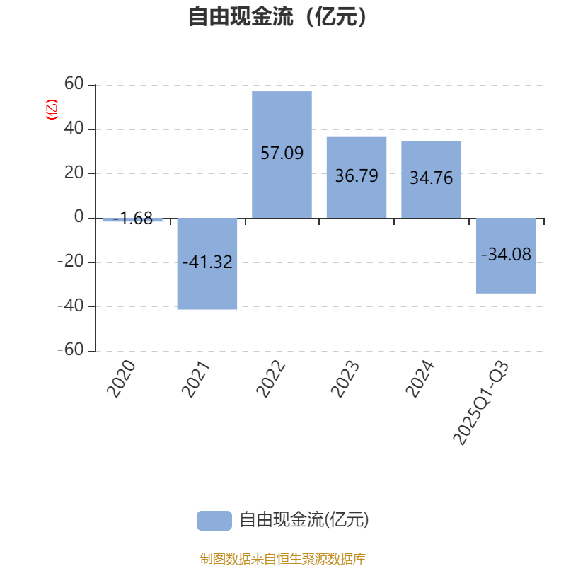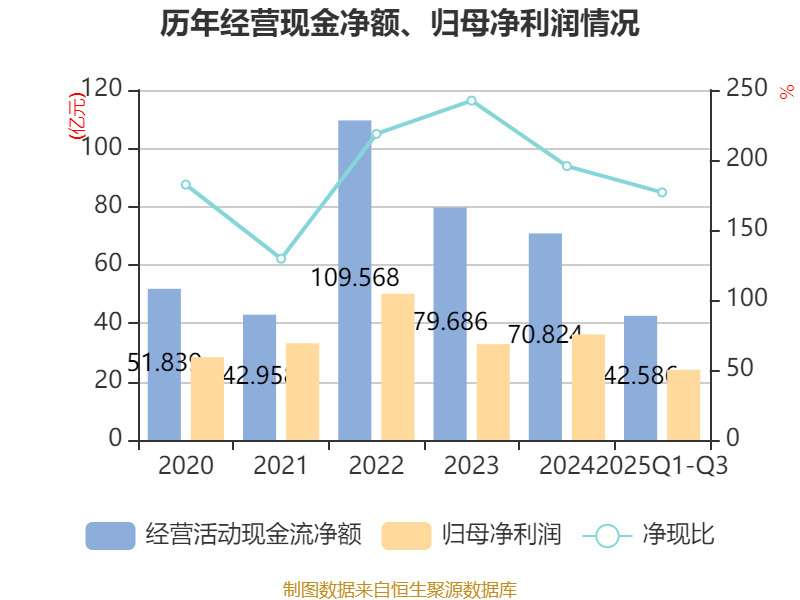 2025年前三季度,公司经营活动现金流净额为42.59亿元,同比增长45.93%;筹资活动现金流净额-9.13亿元,同比增加5.71亿元;投资活动现金流净额-50.17亿元,上年同期为-20.45亿元。