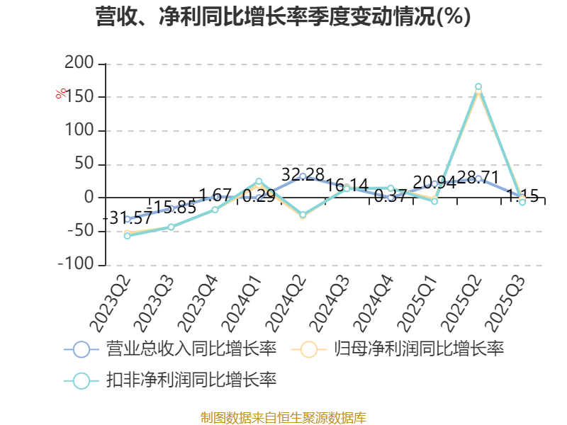 负债重大变化方面,截至2025年三季度末,公司短期借款较上年末增加50.6%,占公司总资产比重上升2.92个百分点;应付票据及应付账款较上年末增加18.2%,占公司总资产比重上升1.12个百分点;递延所得税负债较上年末增加31.67%,占公司总资产比重上升0.2个百分点;应付职工薪酬较上年末减少0.9%,占公司总资产比重下降0.16个百分点。