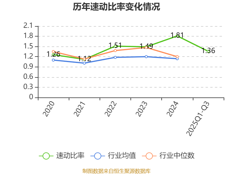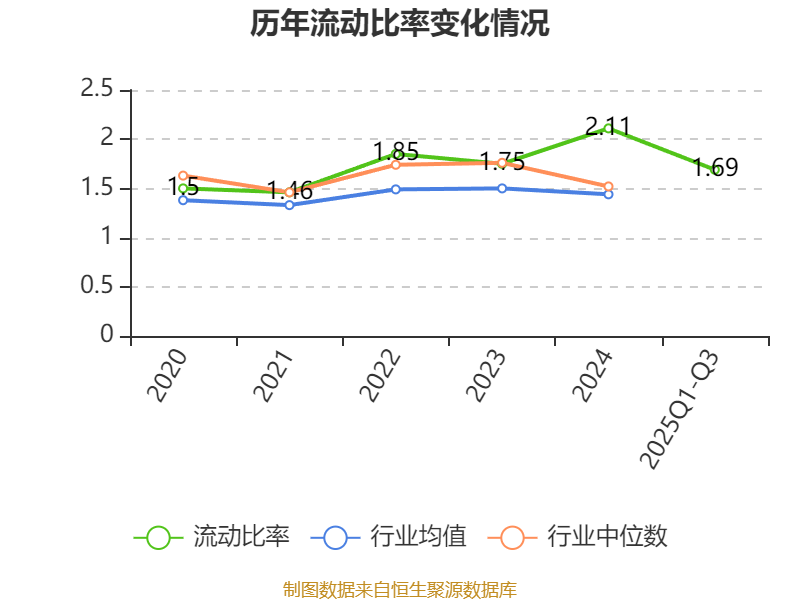 2025年前三季度,公司流动比率为1.69,速动比率为1.36。