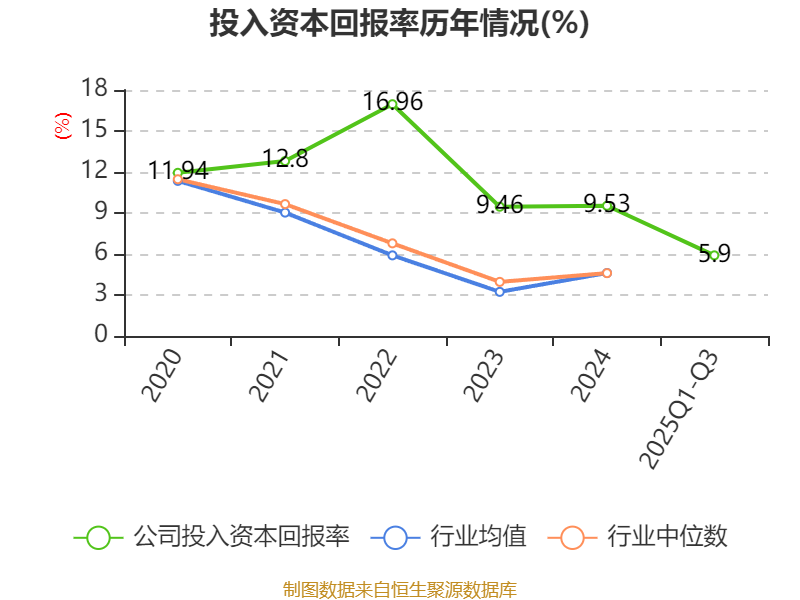 盈利能力方面, 2025年前三季度公司加权平均净资产收益率为7.47%,同比上升0.94个百分点。公司2025年前三季度投入资本回报率为5.9%,较上年同期上升0.8个百分点。
