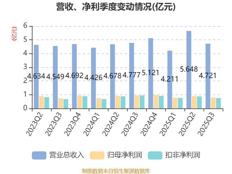 2025年前三季度,公司流动比率为3.99,速动比率为3.65。