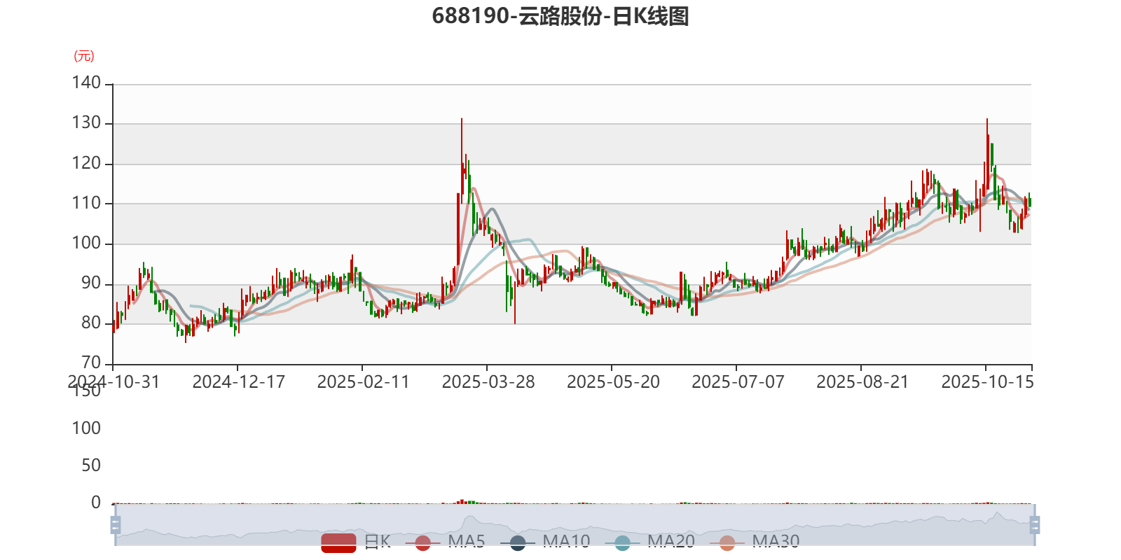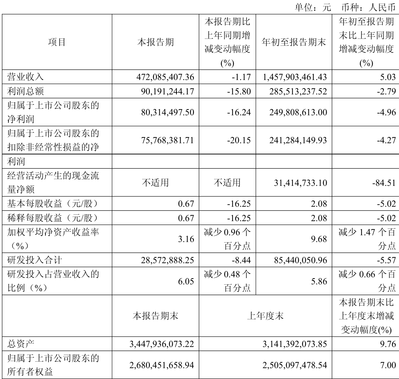 中证智能财讯云路股份(688190)10月31日披露2025年第三季度报告。前三季度公司实现营业总收入14.58亿元,同比增长5.03%;归母净利润2.5亿元,同比下降4.96%;扣非净利润2.41亿元,同比下降4.27%;经营活动产生的现金流量净额为3141.47万元,同比下降84.51%;报告期内,云路股份基本每股收益为2.08元,加权平均净资产收益率为9.68%。