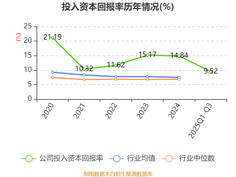 盈利能力方面, 2025年前三季度公司加权平均净资产收益率为9.68%,同比下降1.47个百分点。公司2025年前三季度投入资本回报率为9.52%,较上年同期下降1.44个百分点。