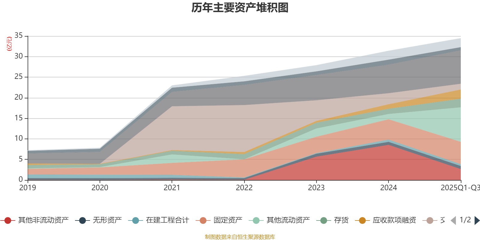 资产重大变化方面,截至2025年三季度末,公司其他流动资产较上年末增加551.44%,占公司总资产比重上升20.28个百分点;其他非流动资产较上年末减少69.03%,占公司总资产比重下降19.5个百分点;交易性金融资产合计较上年末减少48.12%,占公司总资产比重下降4.53个百分点;应收款项融资较上年末增加104.91%,占公司总资产比重上升3.01个百分点。