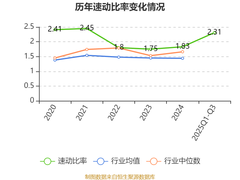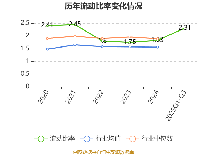 2025年前三季度,公司流动比率为2.31,速动比率为2.31。