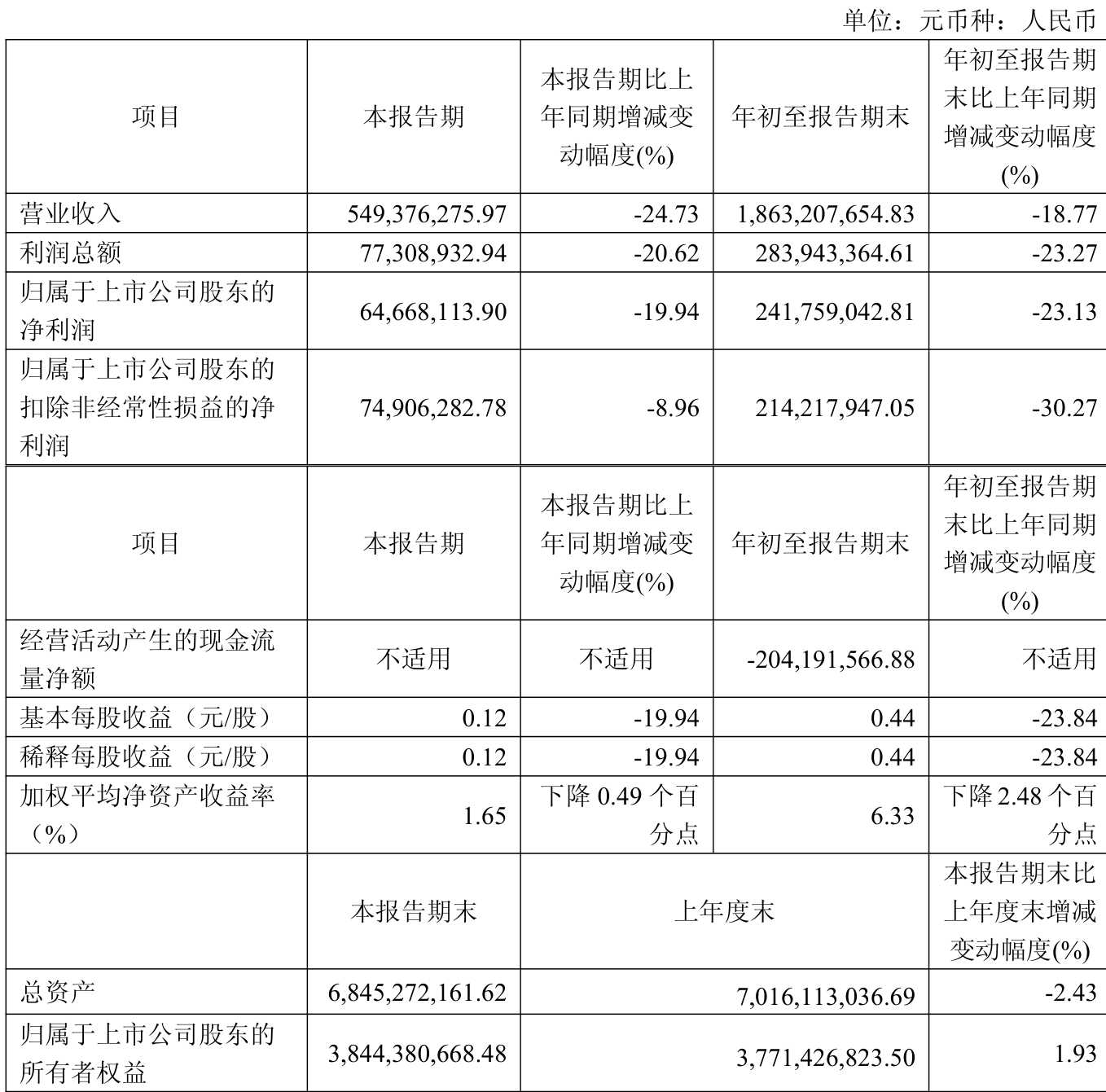 负债重大变化方面,截至2025年三季度末,公司应付债券占公司总资产的7.29%,上年末为0;短期借款较上年末减少80%,占公司总资产比重下降5.67个百分点;其他应付款(含利息和股利)较上年末减少41.11%,占公司总资产比重下降1.68个百分点;应付票据及应付账款较上年末减少6.65%,占公司总资产比重下降1.19个百分点。