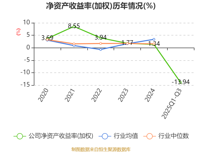 盈利能力方面, 2025年前三季度公司加权平均净资产收益率为-13.94%,同比下降13.93个百分点。公司2025年前三季度投入资本回报率为-3.47%,较上年同期下降4.21个百分点。