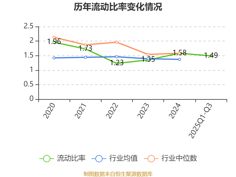 2025年前三季度,公司流动比率为1.49,速动比率为1.15。