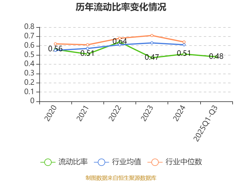 2025年前三季度,公司流动比率为0.48,速动比率为0.42。