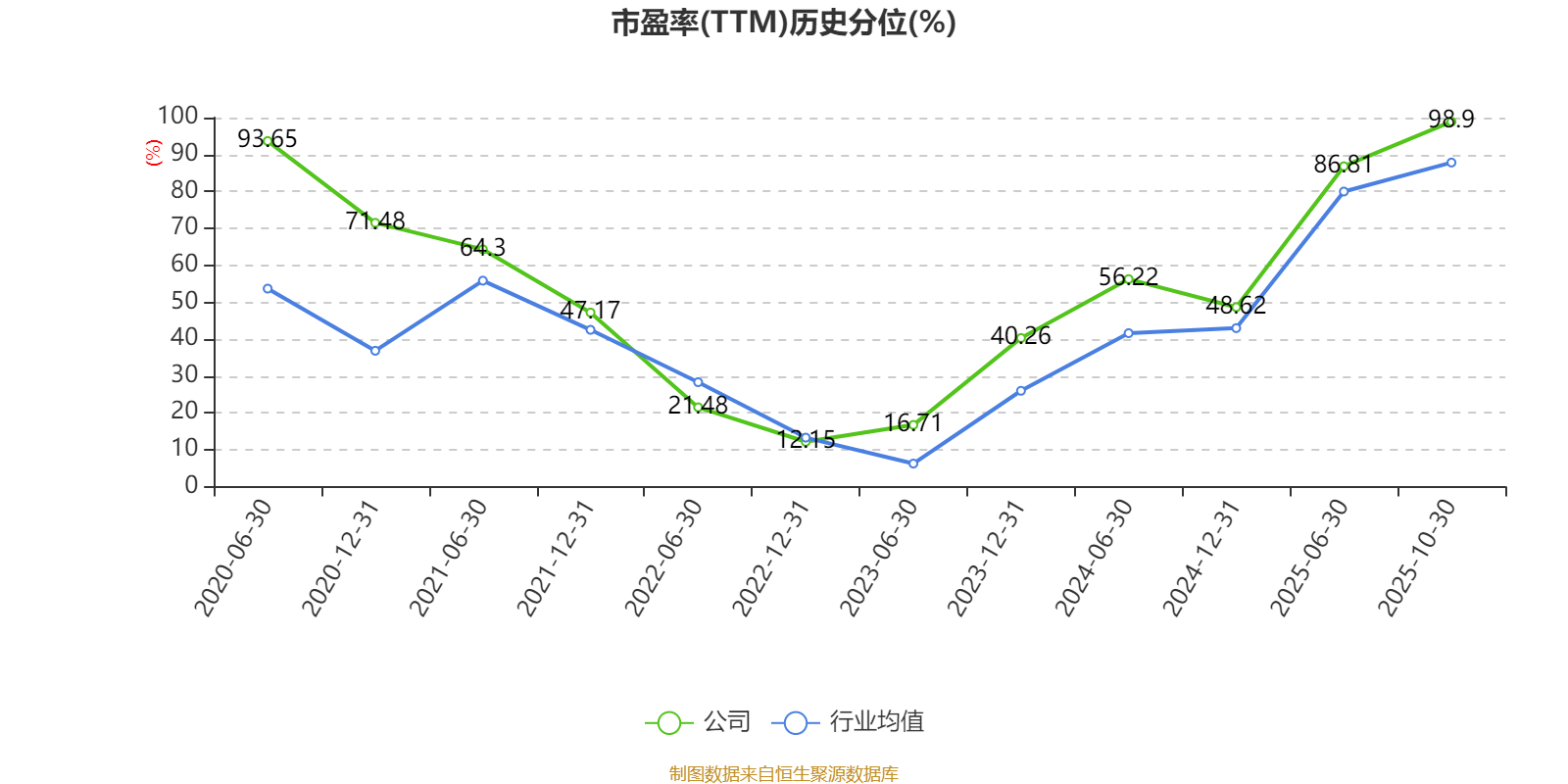 市盈率、市净率为负时,不显示当期分位数,会导致折线图中断。