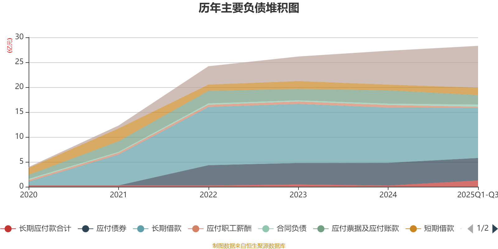 负债重大变化方面,截至2025年三季度末,公司长期借款较上年末减少9.13%,占公司总资产比重下降2.71个百分点;长期应付款合计较上年末增加416.7%,占公司总资产比重上升1.88个百分点;应付票据及应付账款较上年末减少28.96%,占公司总资产比重下降1.63个百分点;应付职工薪酬较上年末减少61.99%,占公司总资产比重下降0.64个百分点。