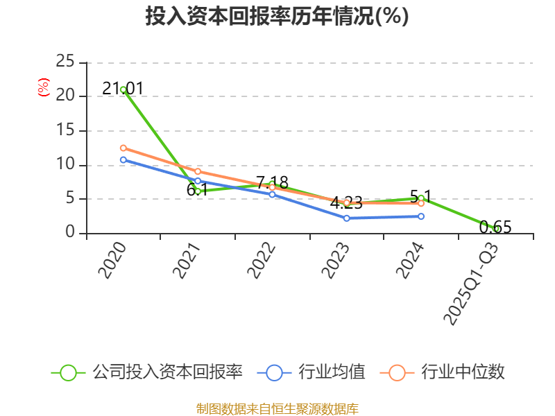 盈利能力方面, 2025年前三季度公司加权平均净资产收益率为0.45%,同比下降3.82个百分点。公司2025年前三季度投入资本回报率为0.65%,较上年同期下降3.32个百分点。