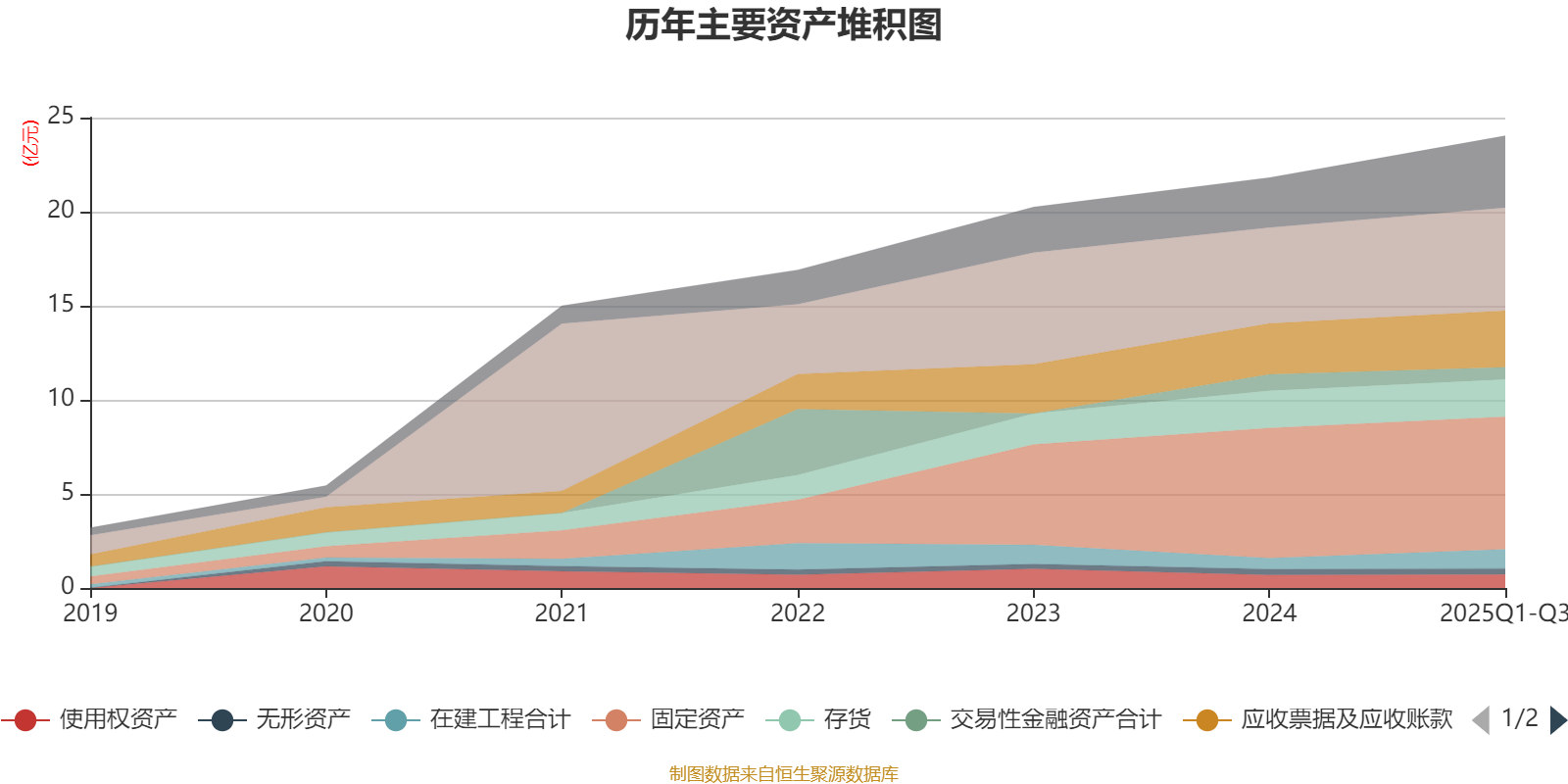 资产重大变化方面,截至2025年三季度末,公司固定资产较上年末增加1.96%,占公司总资产比重下降2.37个百分点;递延所得税资产较上年末增加69.42%,占公司总资产比重上升1.61个百分点;在建工程合计较上年末增加75.98%,占公司总资产比重上升1.59个百分点;其他非流动资产较上年末增加400.98%,占公司总资产比重上升1.39个百分点。