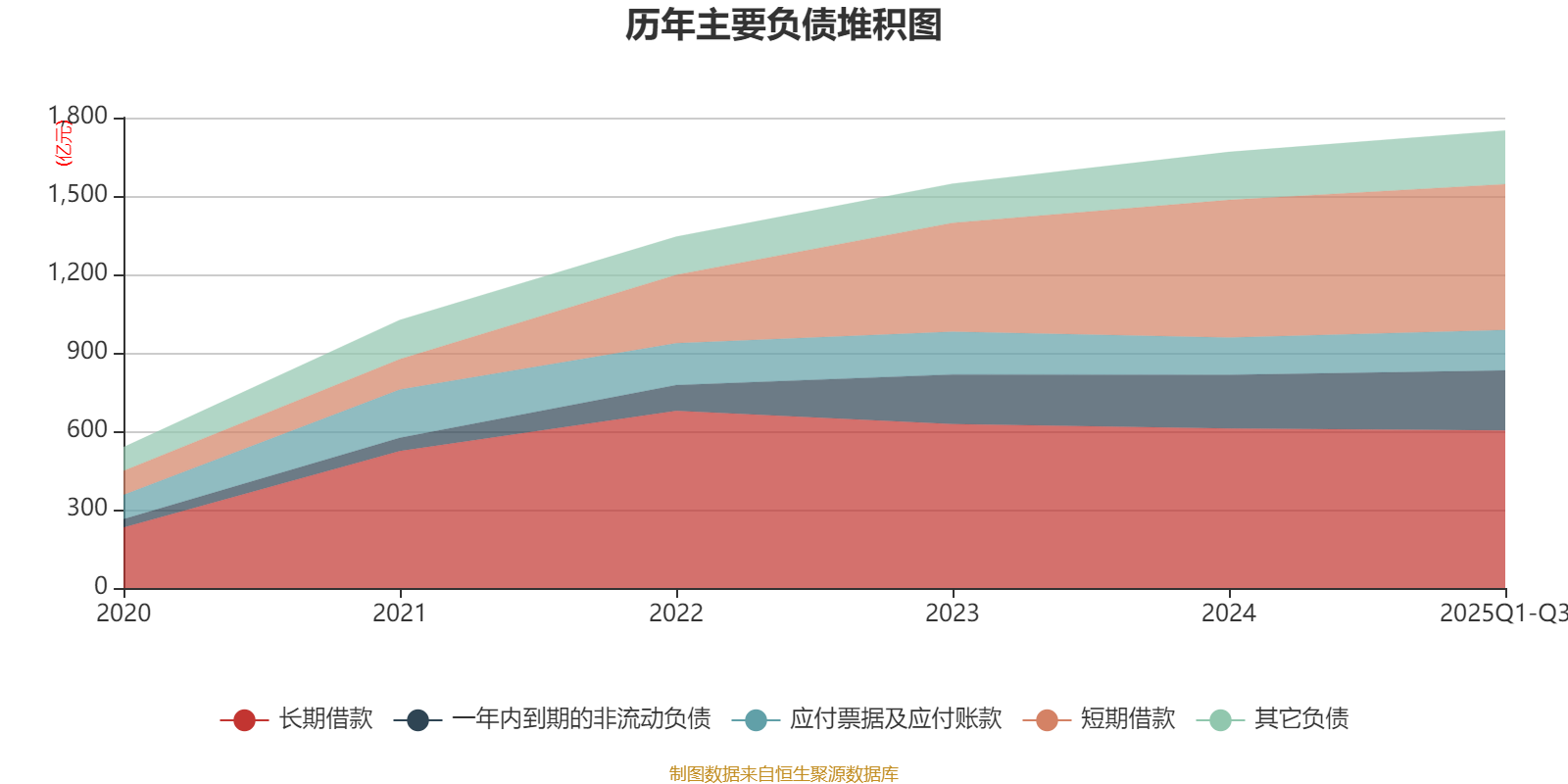 负债重大变化方面,截至2025年三季度末,公司长期借款较上年末减少1.21%,占公司总资产比重下降1.54个百分点;一年内到期的非流动负债较上年末增加11.61%,占公司总资产比重上升0.72个百分点;其他应付款(含利息和股利)较上年末增加355.89%,占公司总资产比重上升0.5个百分点;短期借款较上年末增加5.94%,占公司总资产比重上升0.44个百分点。