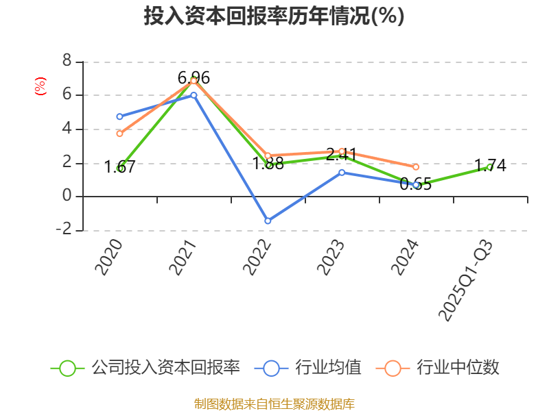 盈利能力方面, 2025年前三季度公司加权平均净资产收益率为0.37%,同比上升4.49个百分点。公司2025年前三季度投入资本回报率为1.74%,较上年同期上升0.99个百分点。
