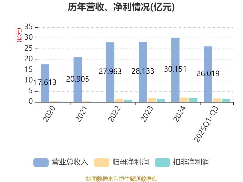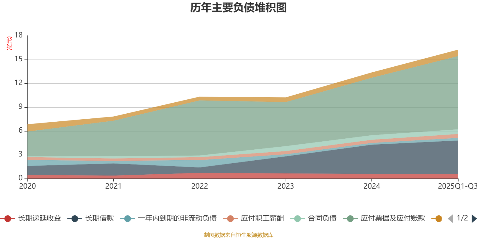 负债重大变化方面,截至2025年三季度末,公司应付票据及应付账款较上年末增加27.3%,占公司总资产比重上升2.96个百分点;长期借款较上年末增加15.47%,占公司总资产比重上升0.42个百分点;其他流动负债较上年末减少58.94%,占公司总资产比重下降0.31个百分点;长期递延收益较上年末减少7.32%,占公司总资产比重下降0.26个百分点。