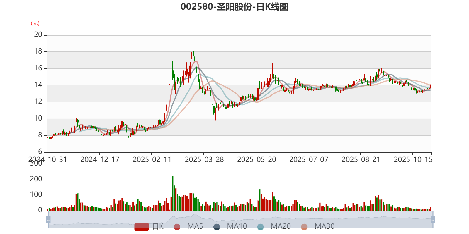 以10月30日收盘价计算,圣阳股份目前市盈率(TTM)约为31.57倍,市净率(LF)约2.7倍,市销率(TTM)约1.87倍。