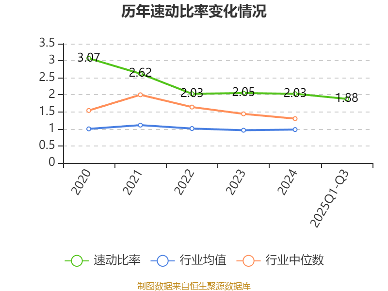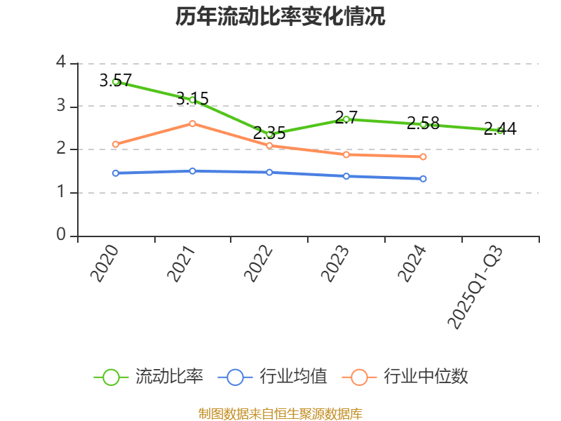 2025年前三季度,公司流动比率为2.44,速动比率为1.88。