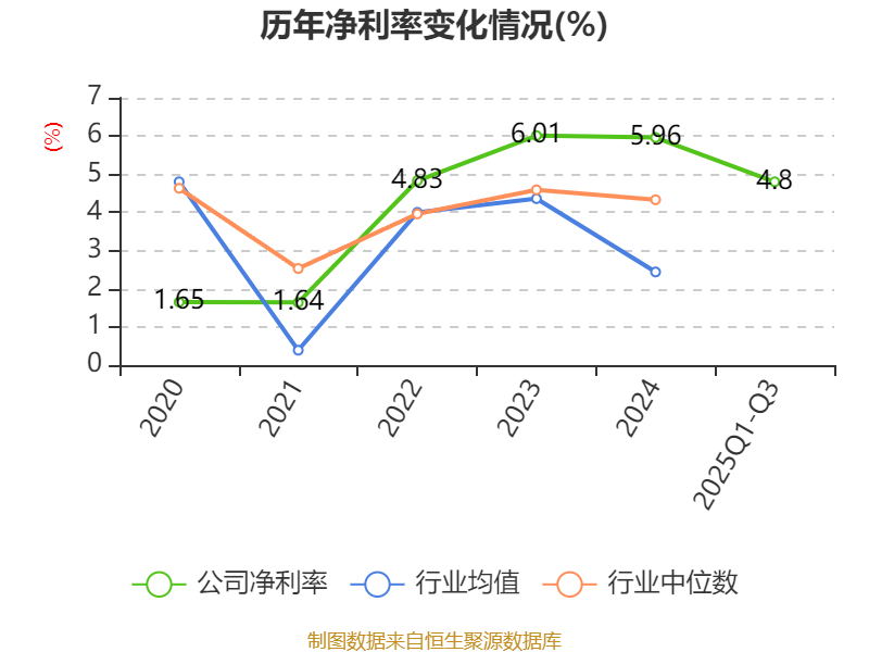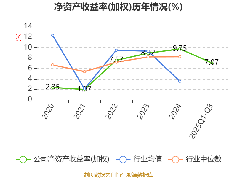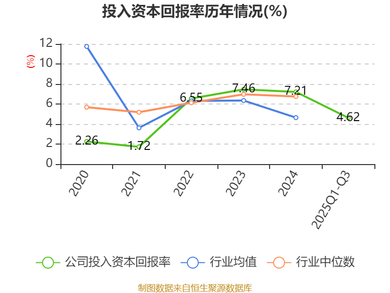 盈利能力方面, 2025年前三季度公司加权平均净资产收益率为7.07%,同比下降0.84个百分点。公司2025年前三季度投入资本回报率为4.62%,较上年同期下降1.36个百分点。