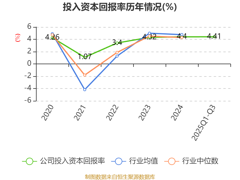 盈利能力方面, 2025年前三季度公司加权平均净资产收益率为7.96%,同比上升1.87个百分点。公司2025年前三季度投入资本回报率为4.41%,较上年同期上升0.74个百分点。