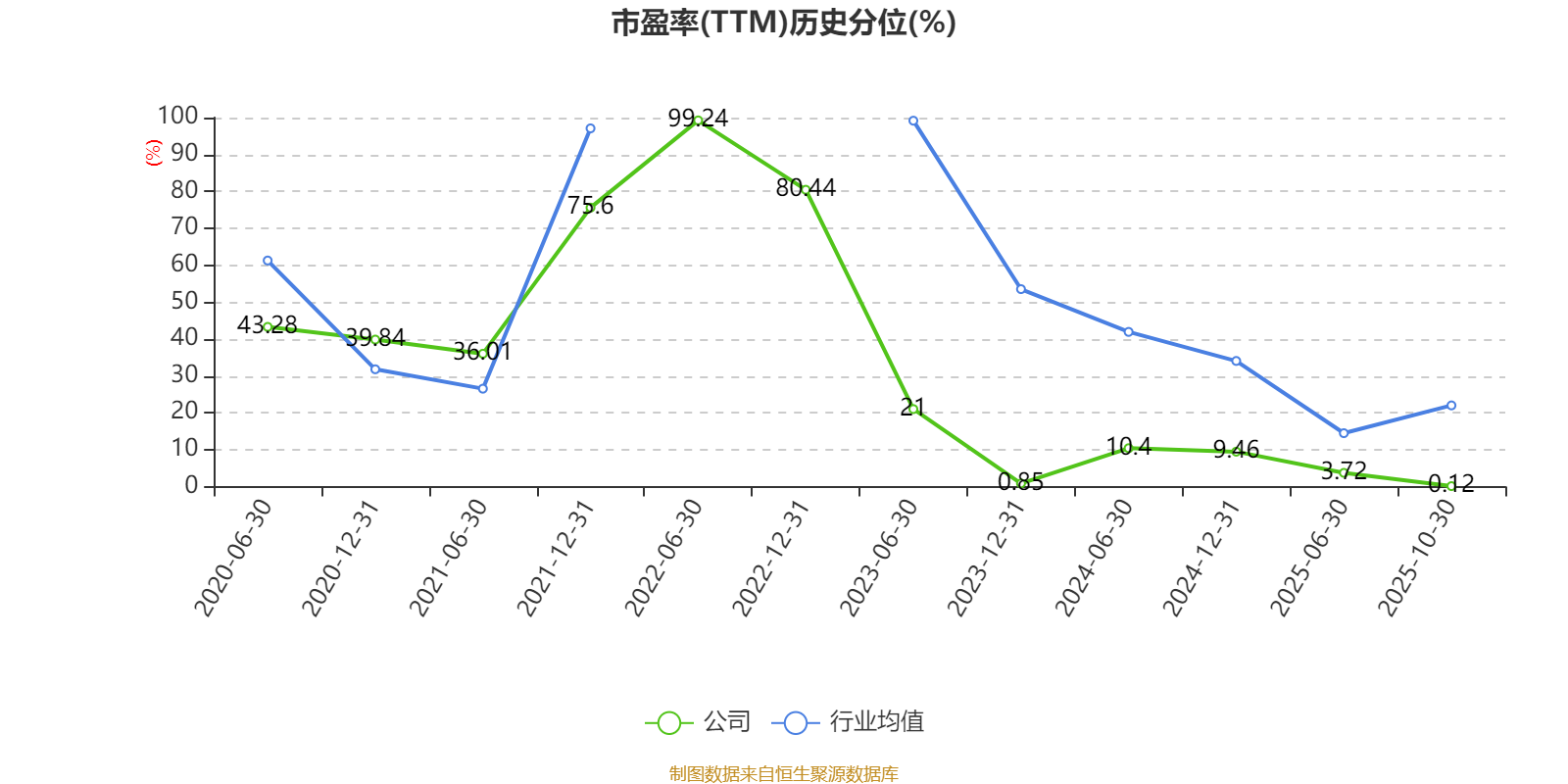 市盈率、市净率为负时,不显示当期分位数,会导致折线图中断。
