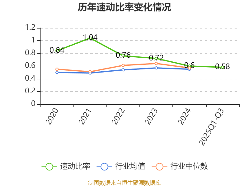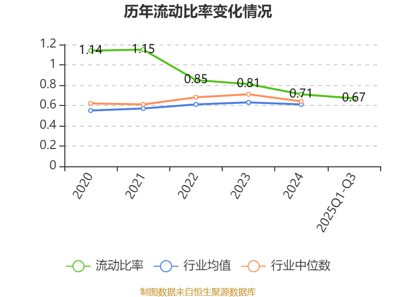 2025年前三季度,公司流动比率为0.67,速动比率为0.58。