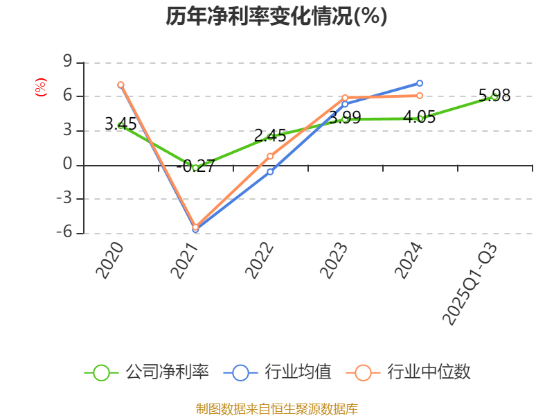 资产重大变化方面,截至2025年三季度末,公司货币资金较上年末减少26.22%,占公司总资产比重下降1.09个百分点;交易性金融资产合计占公司总资产的1.08%,上年末为0;使用权资产较上年末减少49.52%,占公司总资产比重下降0.59个百分点;预付款项较上年末增加106.31%,占公司总资产比重上升0.58个百分点。